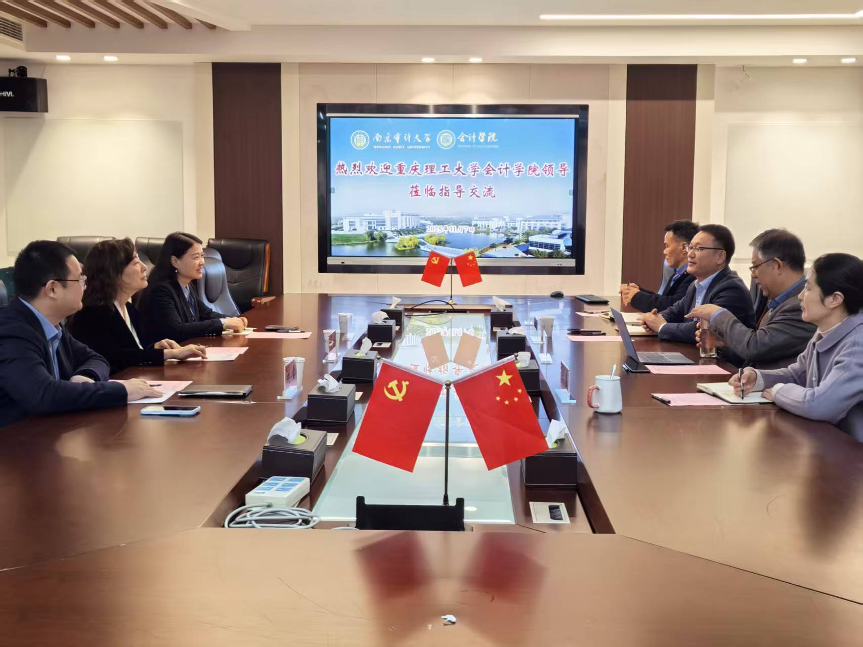 温素彬代表学院对重庆理工大学会计学院的来访表示热烈欢迎。介绍了学院总体情况、学科建设、师资力量、科研成果以及近年来在人才培养、国际交流等方面取得的进展,特别是在课程思政和智能化改革方面介绍了总体思路和办学经验。王波对重庆理工大学会计学院的基本情况作了简要介绍。