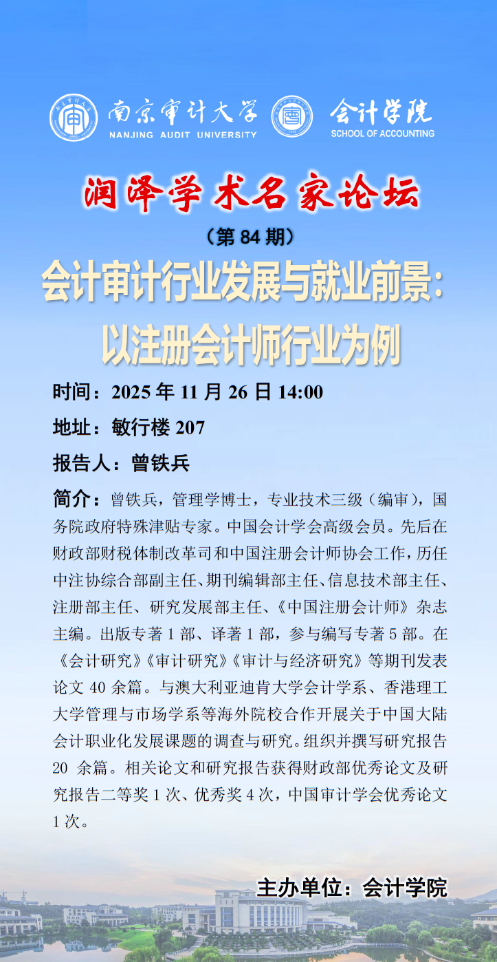 润泽学术名家论坛(第84期):曾铁兵——会计审计行业发展与就业前景:以注册会计师行业为例
