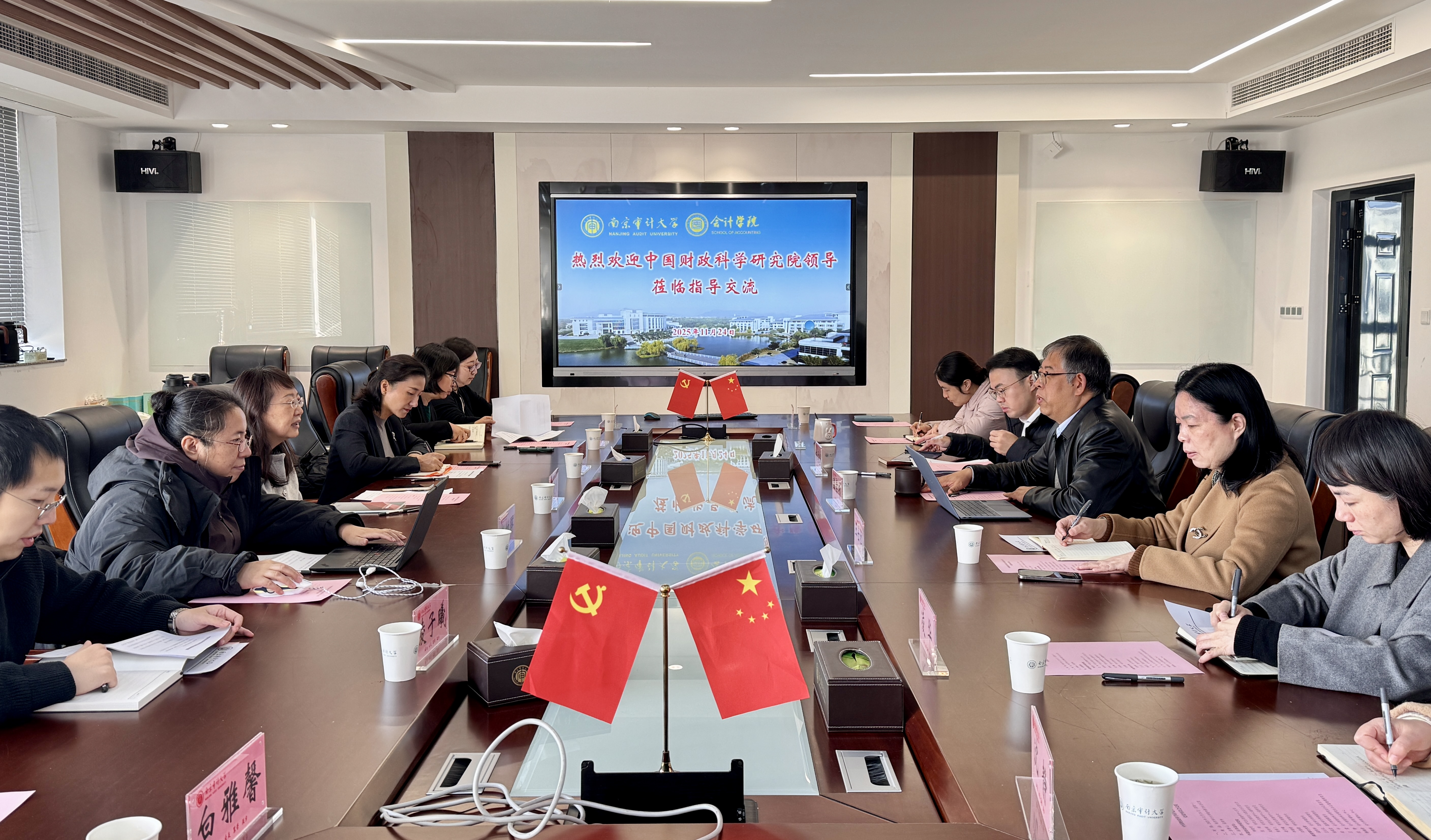 11月24日上午,中国财政科学研究院研究生院教研中心主任韩晓明、研究生院招生与就业办公室主任张维一行来我院调研交流研究生培养工作。国家审计学院院长王士红、副院长杨柔坚,会计学院院长温素彬、副院长凌华及双方相关人员参加座谈。双方围绕会计、审计学科的课程建设,数智化背景下的人才培养,产教融合创新实践等核心议题展开深入研讨。