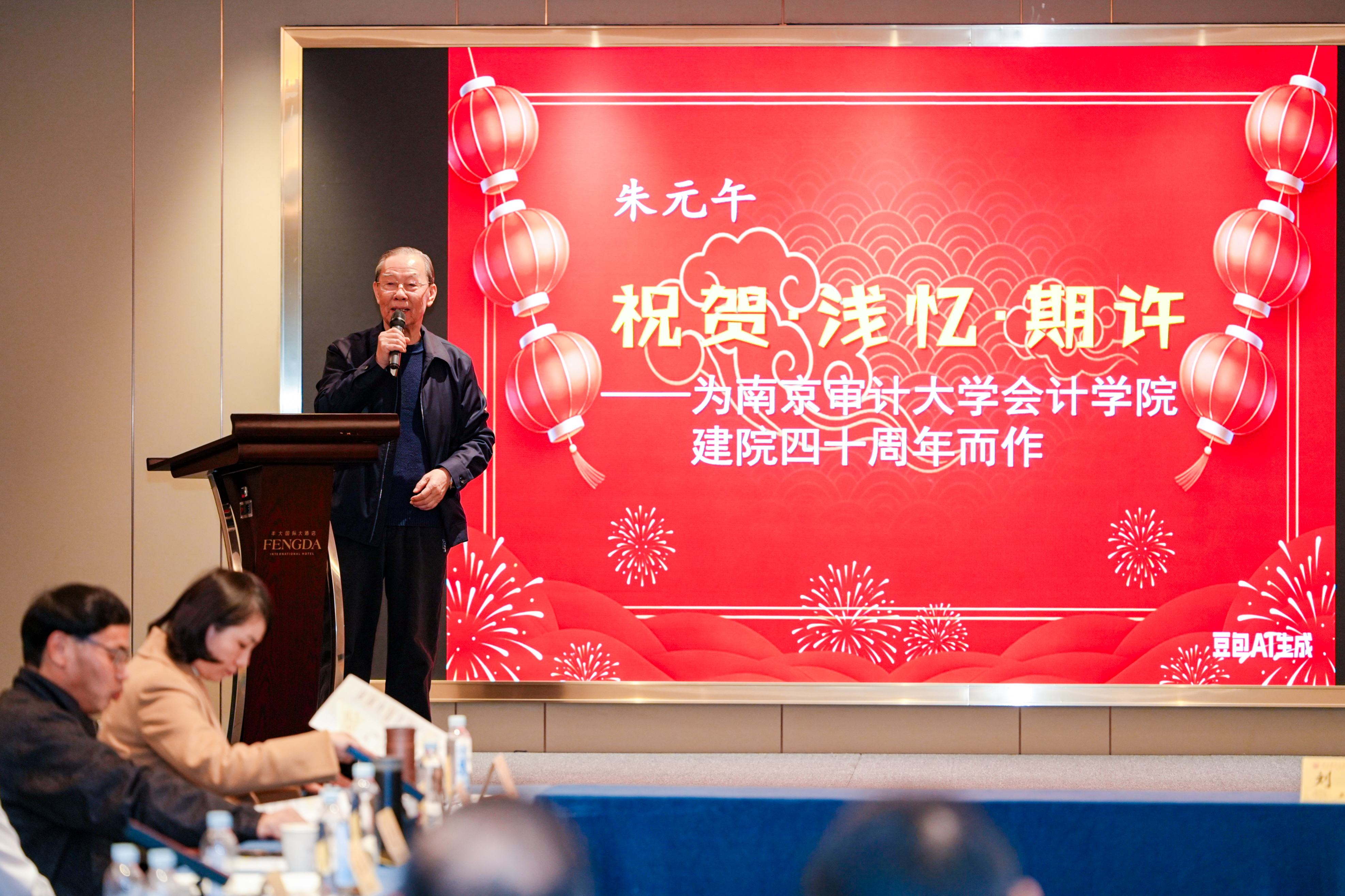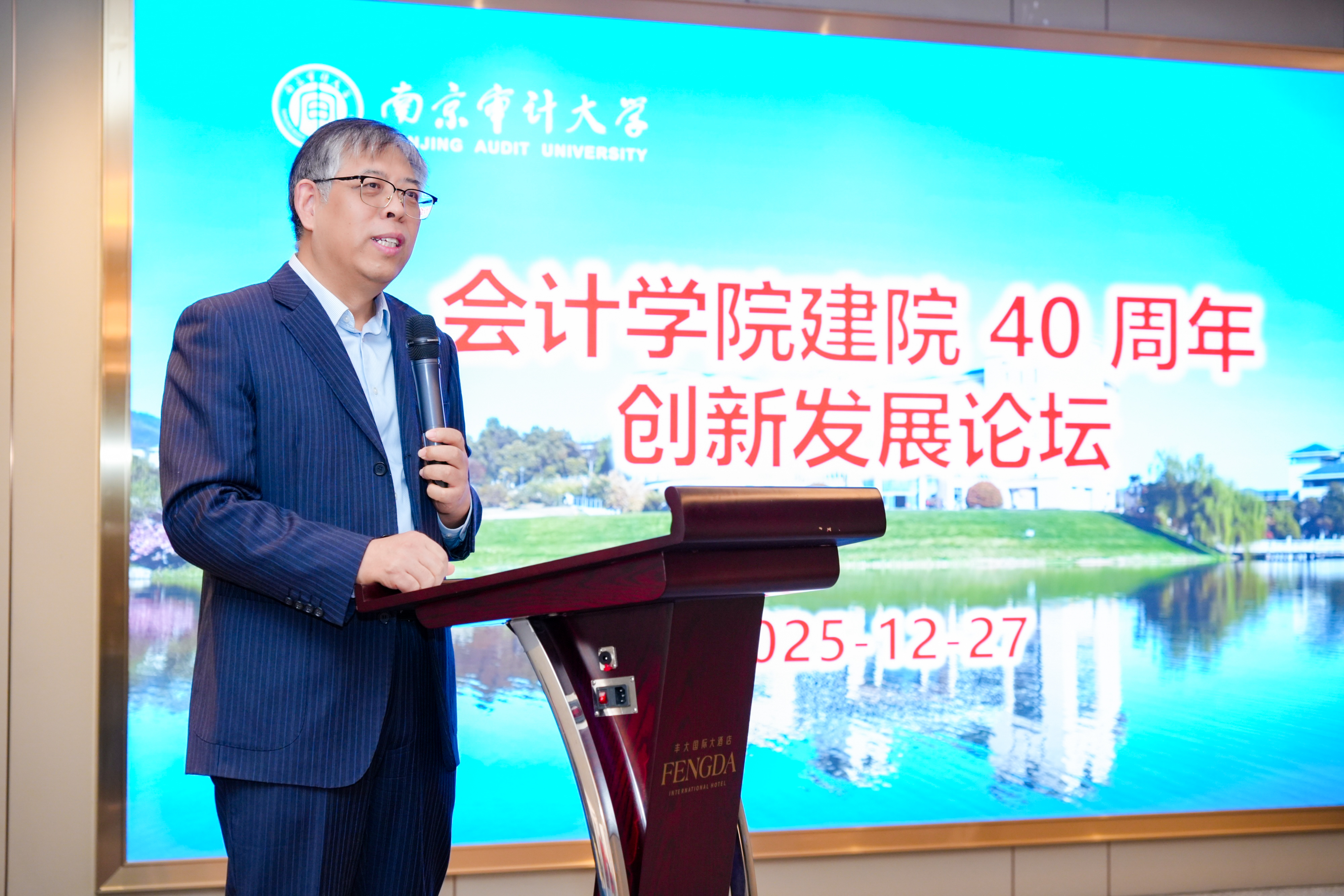 朱元午作“会计数字化与会计本真的坚守”的主题报告。作为南京审计大学会计与统计系首任系主任,朱元武深情回顾了南审会计学院四十年筚路蓝缕的创业历程,从鸡鹅巷简陋校舍到浦口现代化校园,见证学院成长为国内会计教育与科研重镇。面对当今数字化浪潮,他提醒师生:培养数字化会计人才仍需坚守会计本真。惟有不离本真,方能继续登攀。