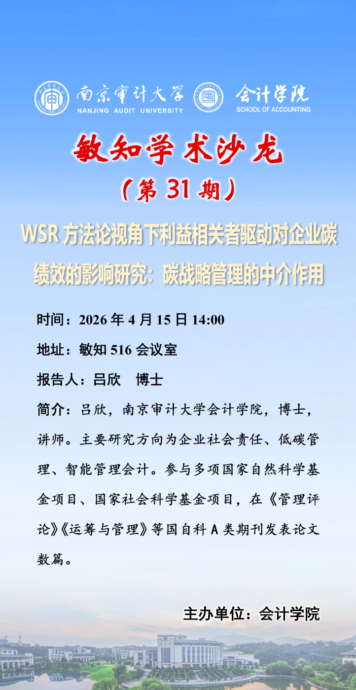 敏知学术沙龙(第31期)吕欣——WSR 方法论视角下利益相关者驱动对企业碳绩效的影响研究:碳战略管理的中介作用