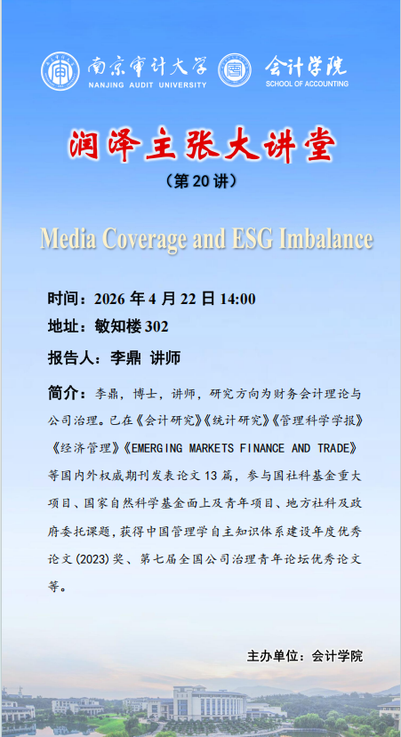 润泽主张大讲堂(第20讲)李鼎——Media Coverage and ESG Imbalance